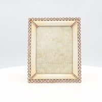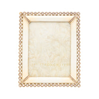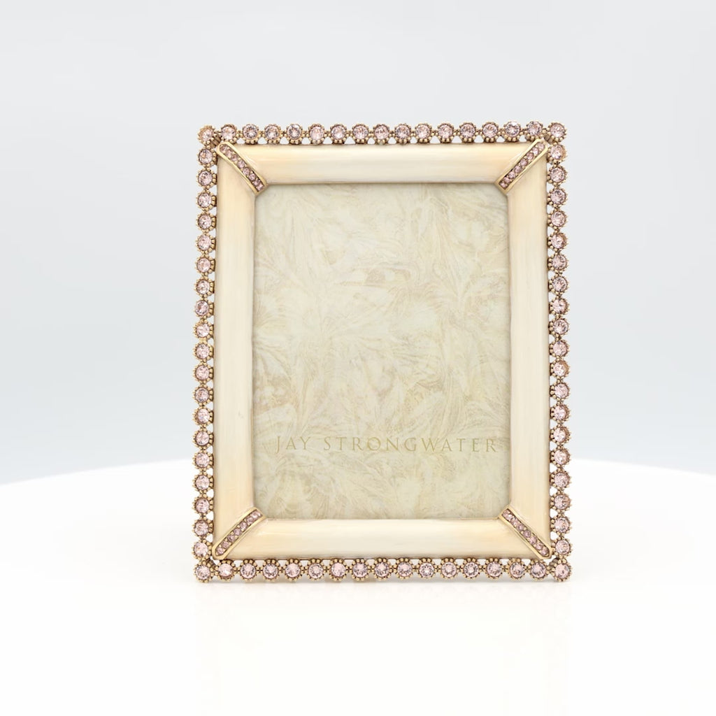 Soft, luminous, and undeniably romantic, the Emilia Stone Edge Frame in Boudoir offers a graceful sanctuary for your most treasured 3" x 4" memories. This piece trades bold contrast for a tonal, monochromatic elegance, featuring hand-painted cream enamel that flows seamlessly into a 14K gold-finished pewter setting. The signature "stone edge" is composed of clear, brilliant European crystals that act as a halo of light around your photograph.