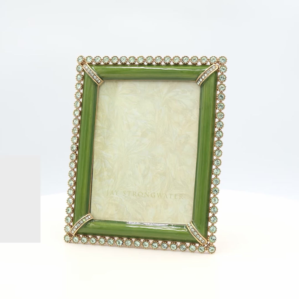 Simplicity, elegance, and versatility are the cornerstones of the Classics collection. The Emilia Stone Edge 3" x 4" Frame makes your cherished memories the star of the show, surrounding them with beautiful — yet understated — leaf-hued hand enameling and hand-set European crystals.