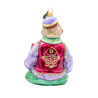 Playful and poised, the Monkey Bearing Gifts Ornament is handcrafted in rose gold with accents of jade green, soft pinks, and vibrant purples. Brought to life with hand-painted enamel and European crystals