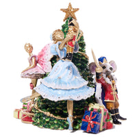 Step into the magic of Tchaikovsky’s Nutcracker Suite with our 2025 Nutcracker Suite Mini Box. This stunning piece beautifully captures the classic imagery of Clara holding her beloved Nutcracker, her family's exquisitely decorated tree behind her. Evoking the enchanting spirit of the Sugar Plum Fairy, this annual dated holiday box is cast in metal and plated with 14K gold. Each box is intricately hand-painted in classic Christmas-hued enamel and embellished with brilliant European crystals, perfect for holding tiny treasures and holiday memories.
