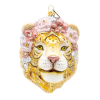 Crowned with a rose gold floral wreath, this majestic tiger gleams in radiant gold tones. Hand-painted in exquisite enamel detail and accented with shimmering crystals, the ornament captures the regal spirit and striking beauty of this extraordinary creature.
