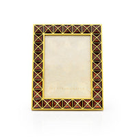 Gleaming rows of faceted metal pyramids—enameled in rich shades of creamy topaz—define the Abaculus Pyramid 3” x 4” Frame with modern radiance. Each surface is formed by pouring molten metal into molds, then hand-polished and finished in 14K gold. The hand-painted enamel pyramids shimmer with warm golden tones, capturing the elegance of topaz in every facet. Complete with our signature enameled metal back plate and kickstand, this frame is just as striking from behind as it is from the front. Designed to stand vertically or horizontally.