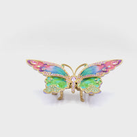 A jeweled fluttering butterfly to alight a tabletop anywhere in your home! Lifted on delicate metal legs, the Madame butterfly’s wings are beautifully hand-painted in shades of blue enamel with hand-set European crystals in shades of blue. Plated in 14K gold and detailed with a jeweler’s attention to crystal stone setting, including large faceted oval blue crystals.